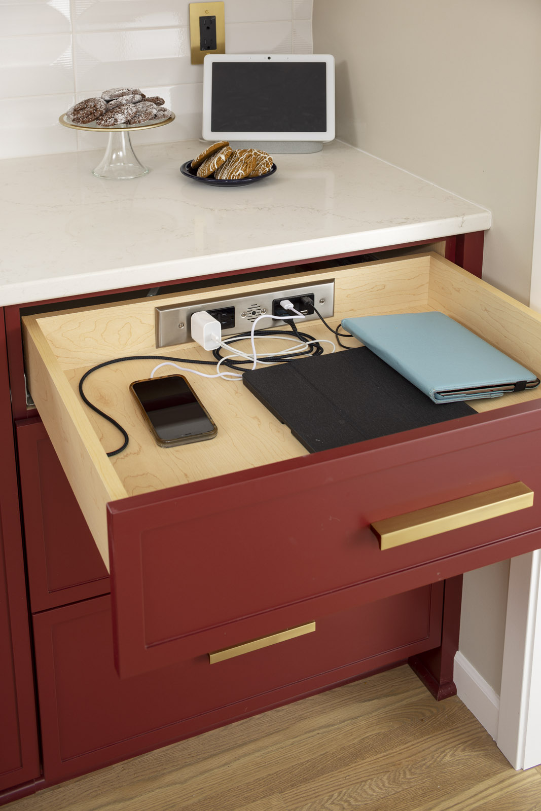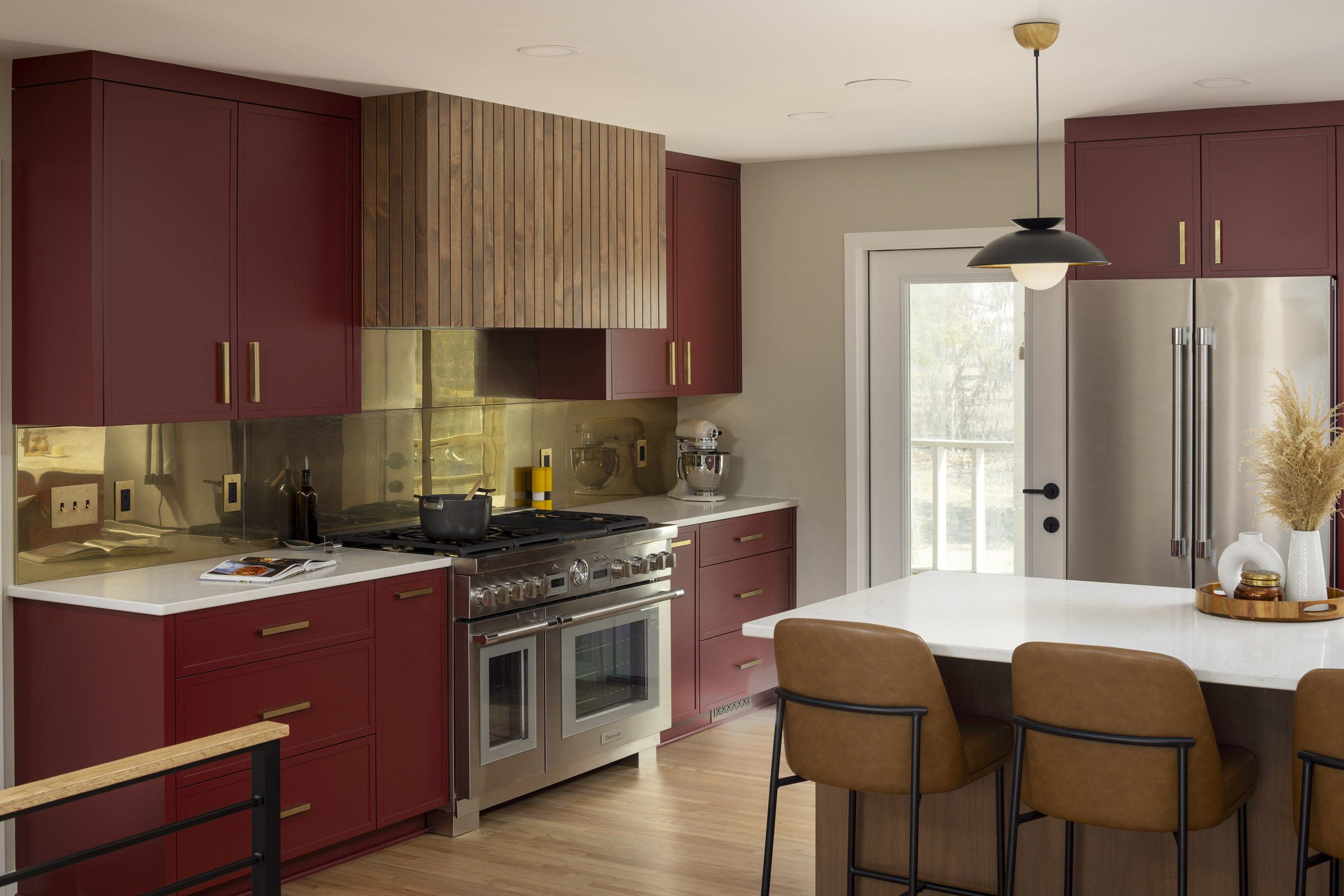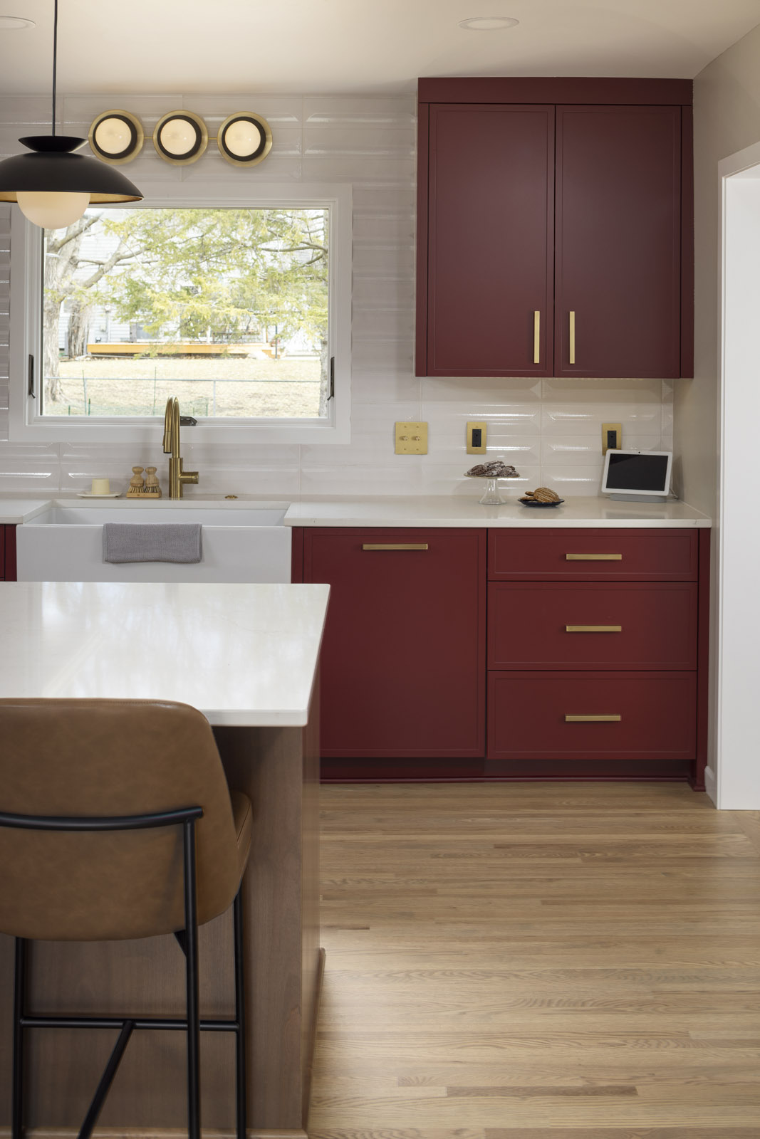 Rich cabinetry, gold and geometric backsplashes, and open layout dramatically changes the home experience for this family.