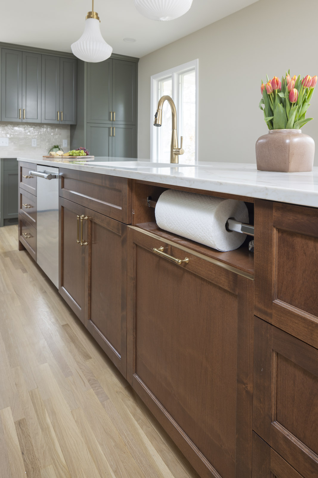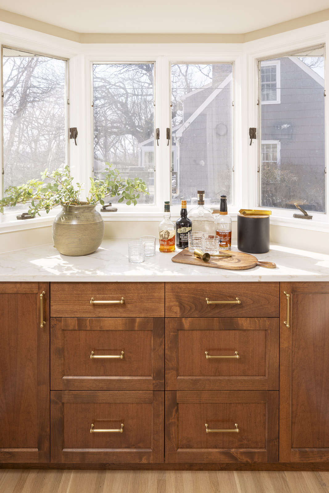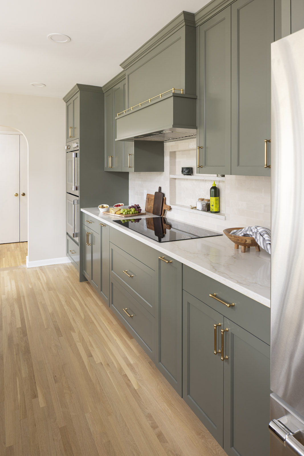 While keeping classic arched doorways, this expanded kitchen remodel offers island seating, prime organization, and open layout for joyful entertaining.